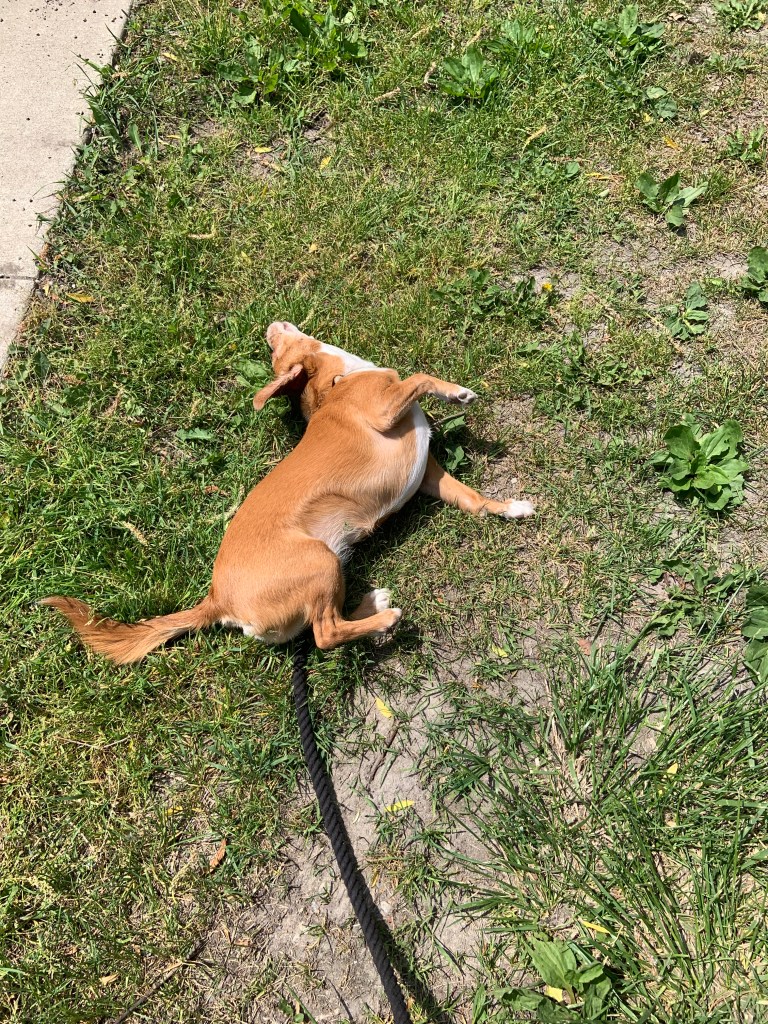 Even though a post doesn’t happen everyday, it doesn’t mean Henley isn’t busy. Mostly busy with rolling! Each roll below is from a different day, there is just so much soft grass and great smells she wants to absorb! Then cooling off with a nice cup of neighborhood lemonade!
