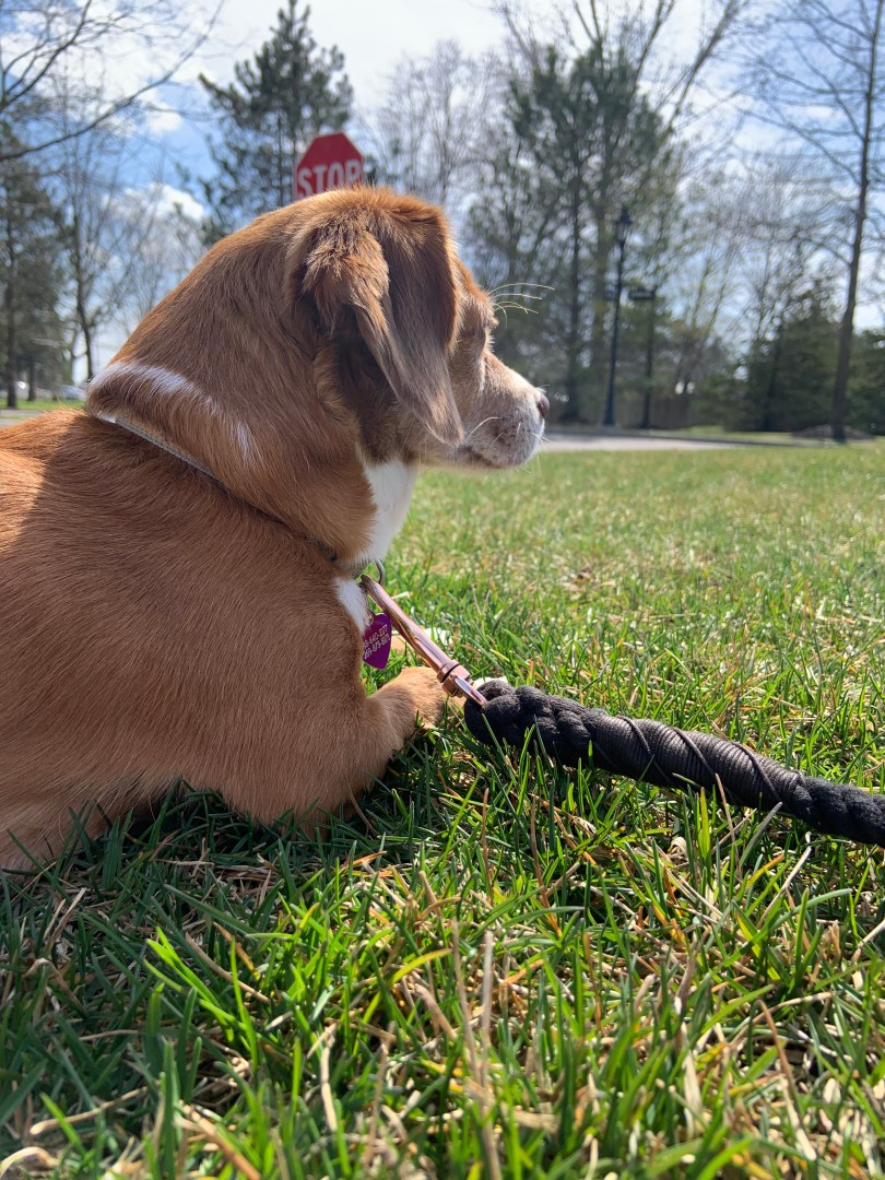 The winter is finally at an end. The Cheagle can emerge from indoors like a butterfly from a cocoon and enjoy all the wonders of the outdoors; mainly grass and bushes.