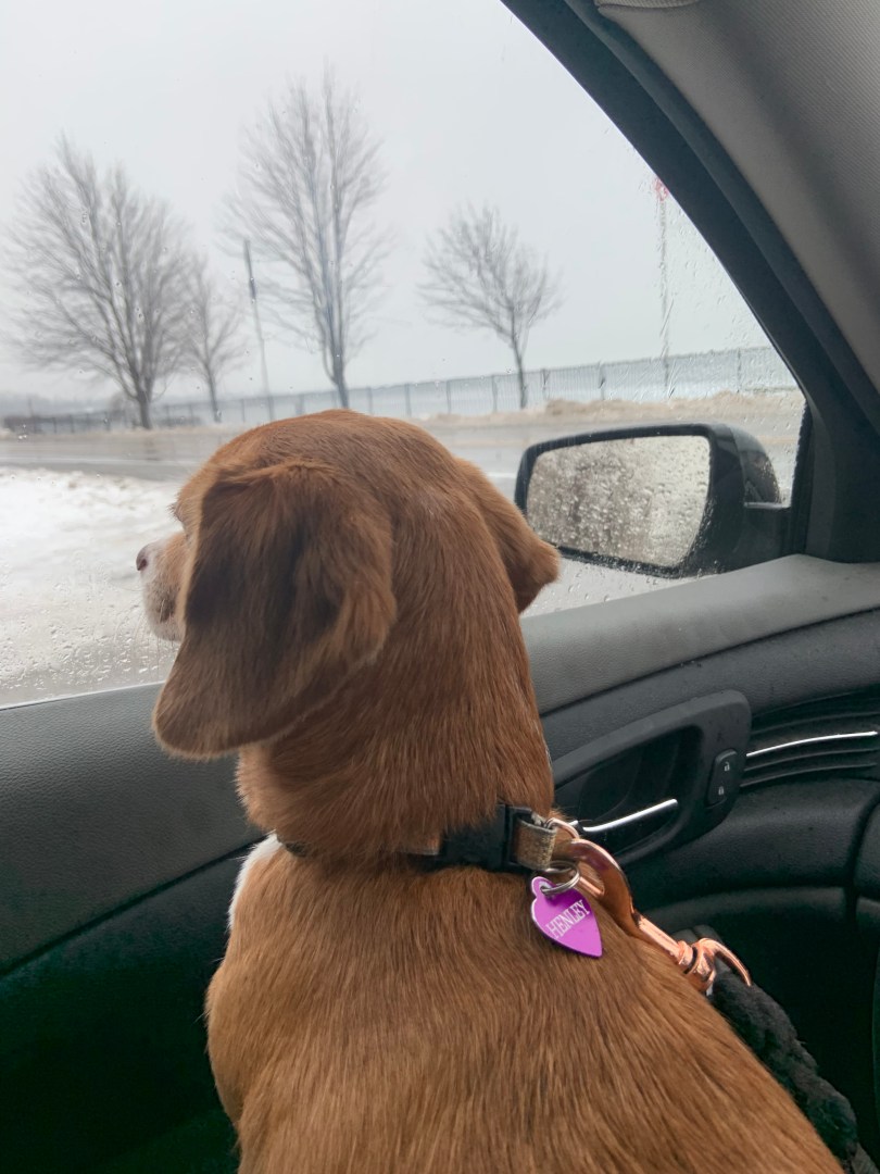 It has been a wet couple of days. Henley is tired of always coming back from walks with wet and cold feet. She’s staying dry and warm at any cost.