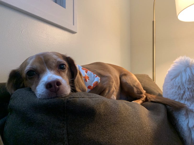 Always provide your Cheagle with a soft and high place to rest after holiday festivities; such as a couch back or a loft.